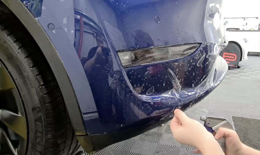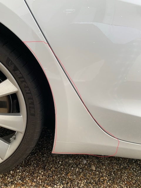 PPF fitted to a Tesla (red outline to show the area)